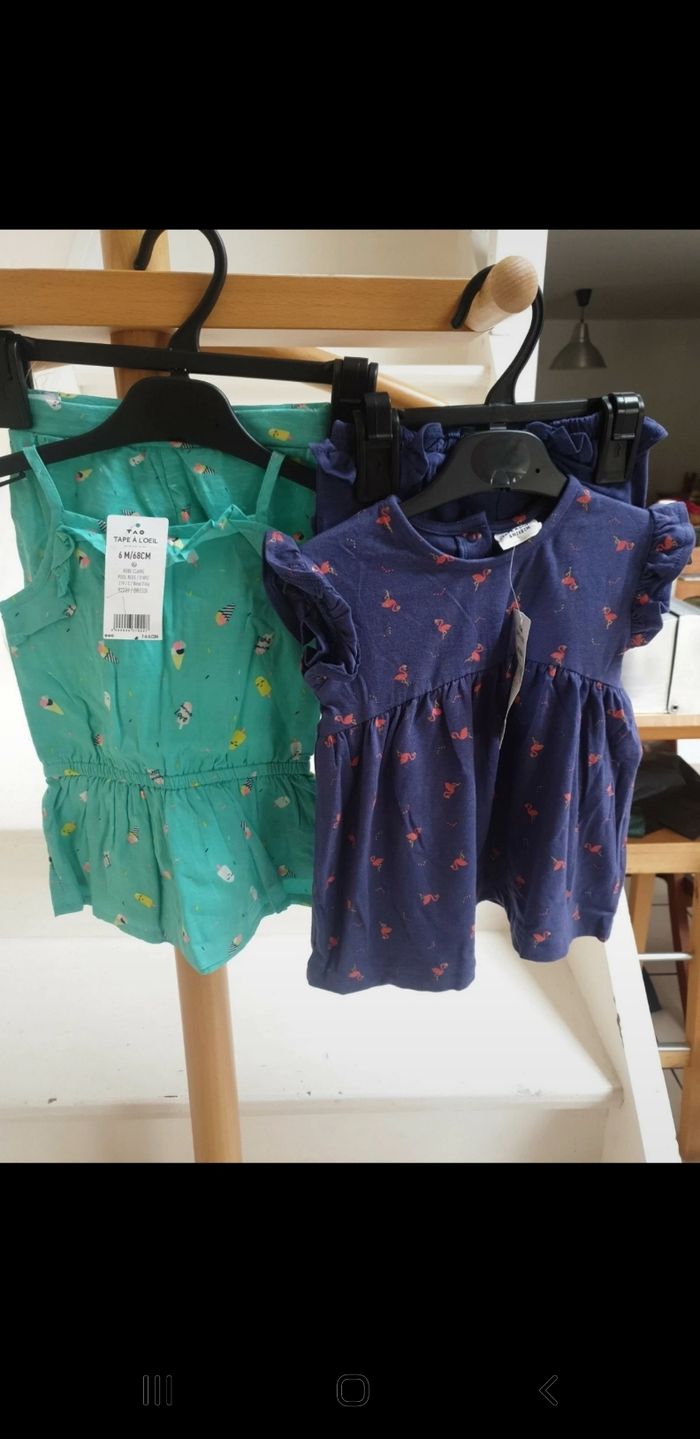 Lot de 2 robes et shorts assortis neufs 6 mois - photo numéro 1