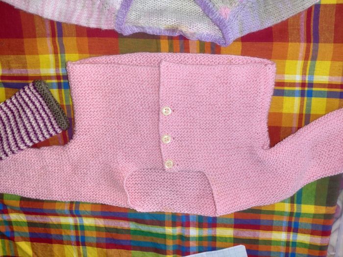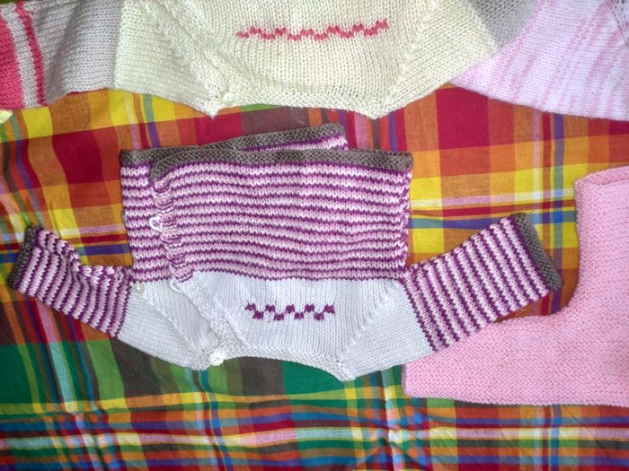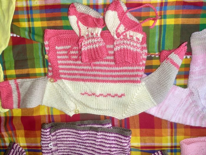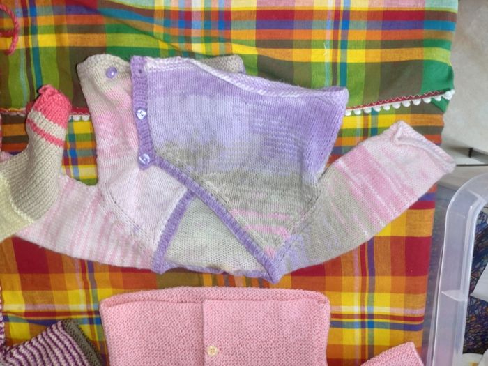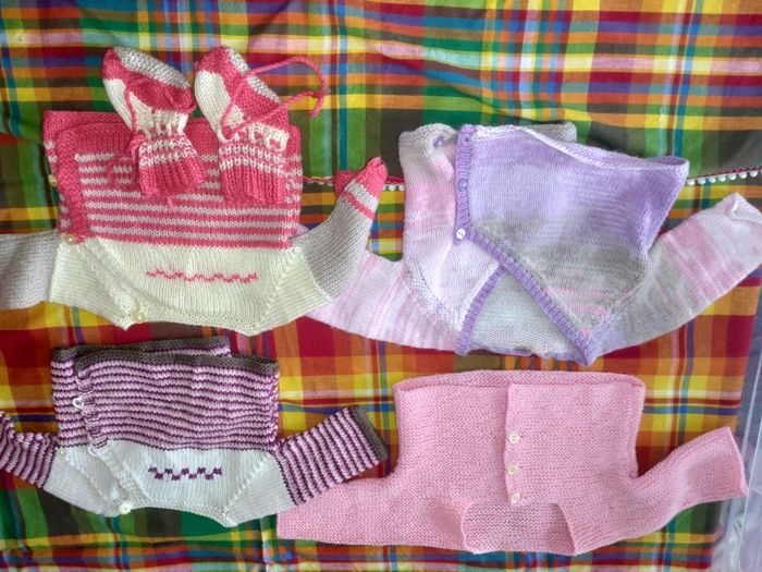 Lot de 4 brassières fait main,avec une brassière avec sa paire de chaussons,bonne état général.