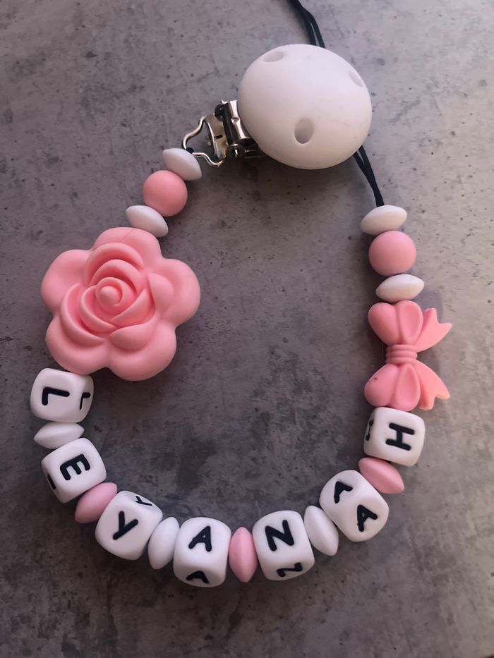 Attache tétine personnalisé en silicone ou en bois au souhait de l’acheteur . Personnalisable au choix de l’acheteur que ce soit la couleur comme le prénom ou le thème . Le fil est doublé pour plus de sécurité tout le long de l’attache tétine. N’hésitez pas à me demander et regarder mon dressing. Une photo vous sera envoyée avant l’expédition pour vous ayez un aperçu du rendu. Tous les produits sont réalisés avec du materiel spécial conçu aux bébés , enfants.