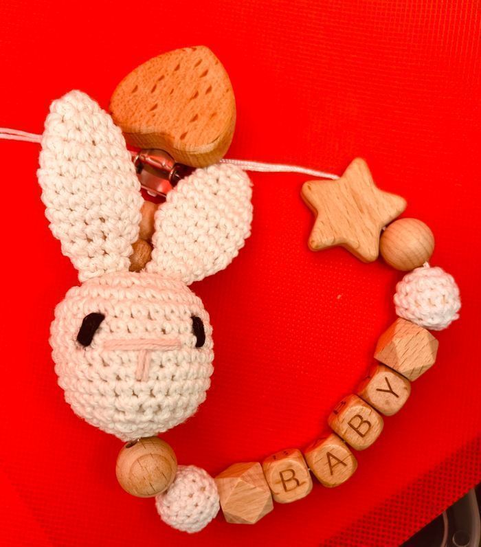 Attache tétine personnalisé en silicone ou en bois au souhait de l’acheteur . Personnalisable au choix de l’acheteur que ce soit la couleur comme le prénom ou le thème . Le fil est doublé pour plus de sécurité tout le long de l’attache tétine. N’hésitez pas à me demander et regarder mon dressing. Une photo vous sera envoyée avant l’expédition pour vous ayez un aperçu du rendu. Tous les produits sont réalisés avec du materiel spécial conçu aux bébés , enfants.