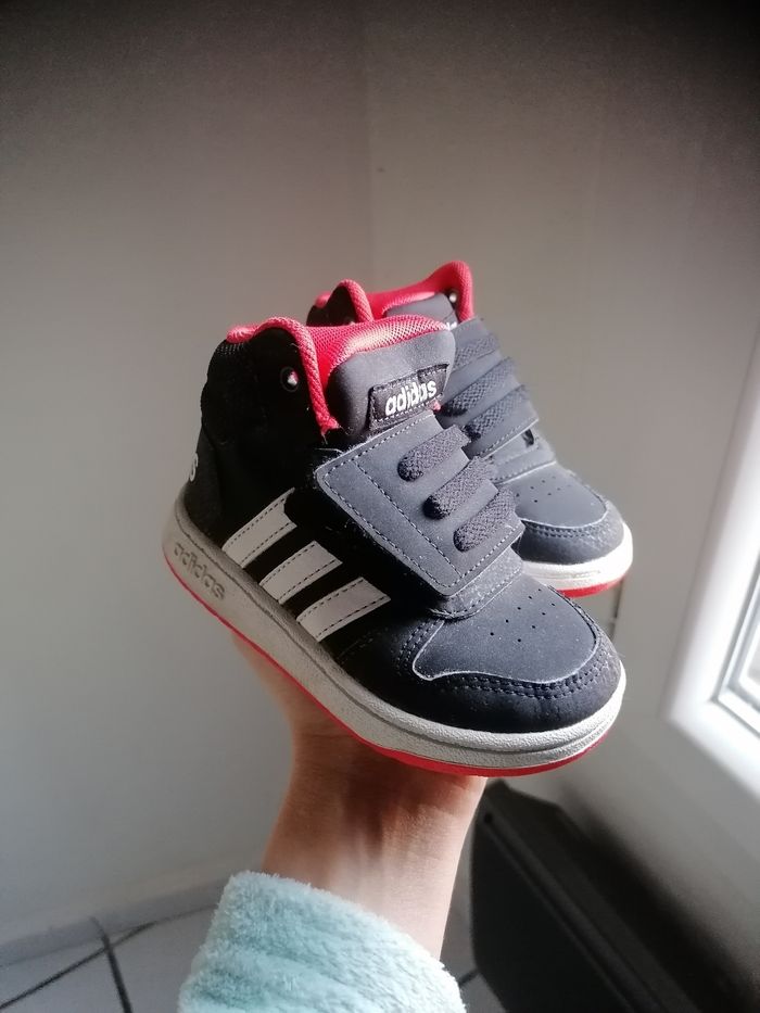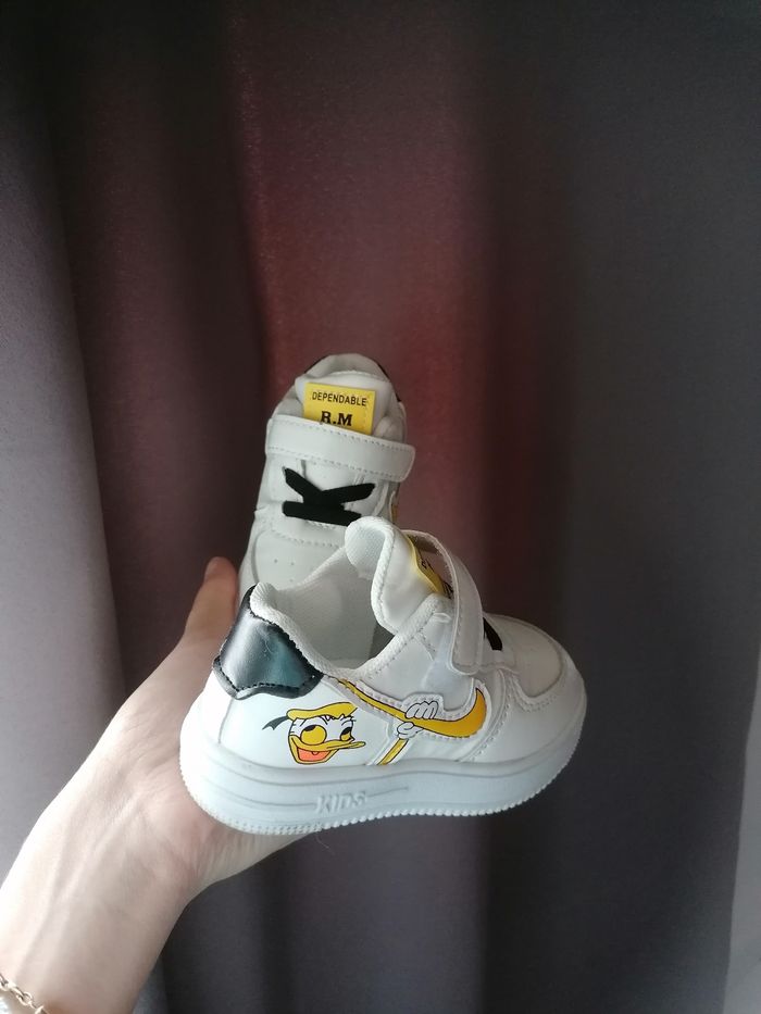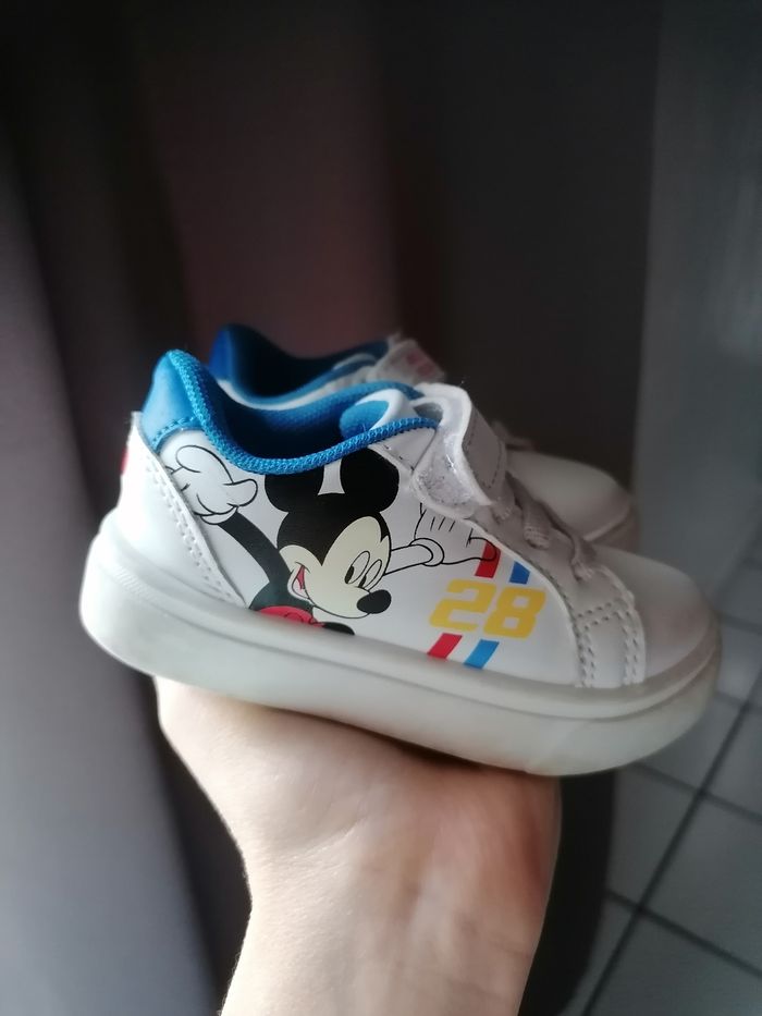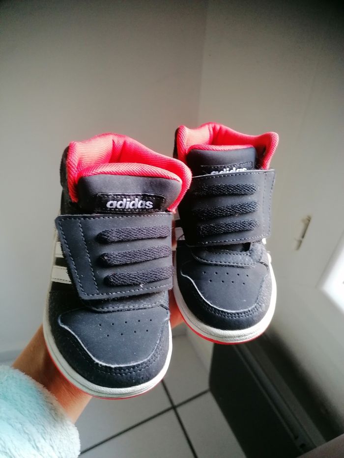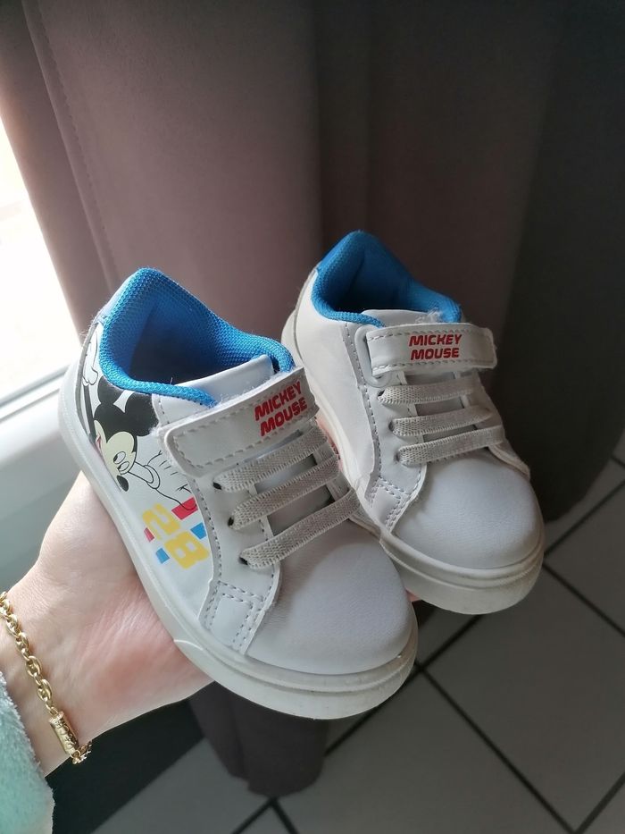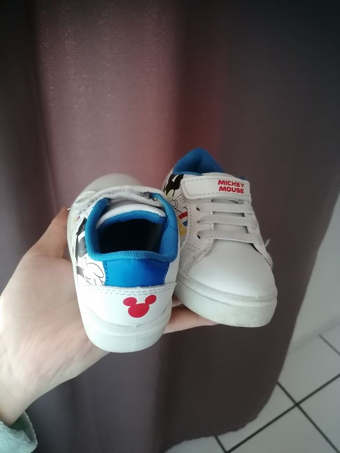 Je vends 3 paires de basket déjà porter mais en bon états, basket Adidas noir 22, basket mickey 21, basket donald(quasi neuf) taille 22