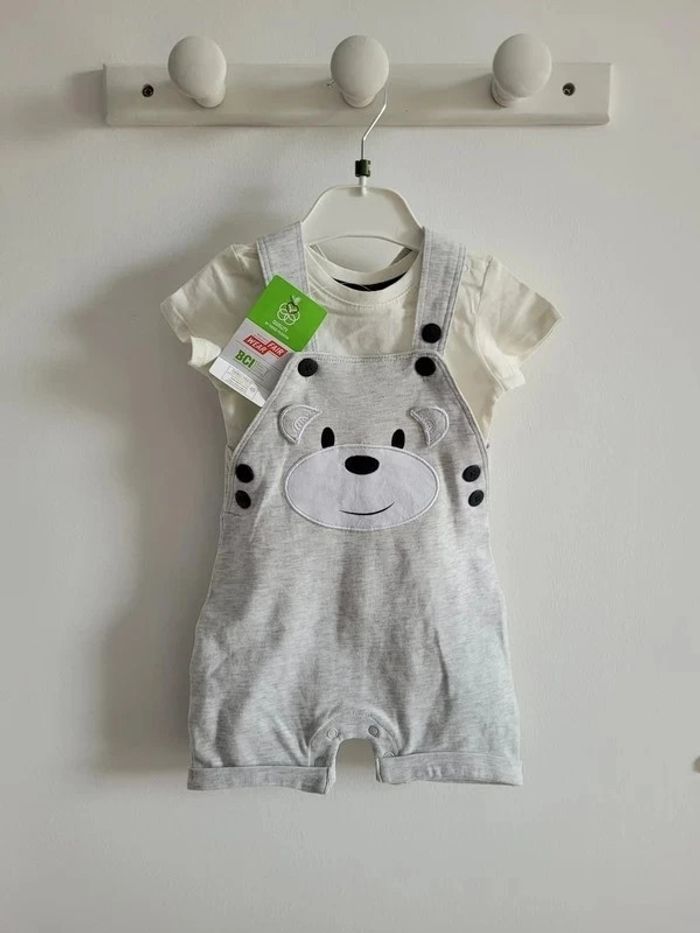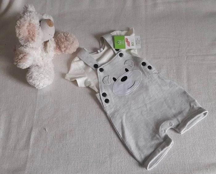 ensemble salopette et t-shirt 2-4 mois dopodopo 62 cm couleur gris et blanc neuf