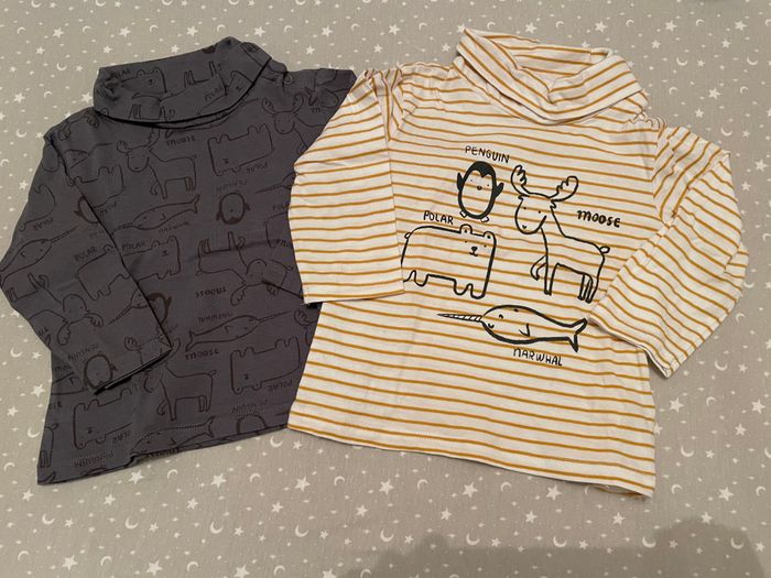 Deux hauts neuf col roulé , marque Tex Baby jamais porté, juste lavés. Taille 12 mois Gris et noir Beige et jaune