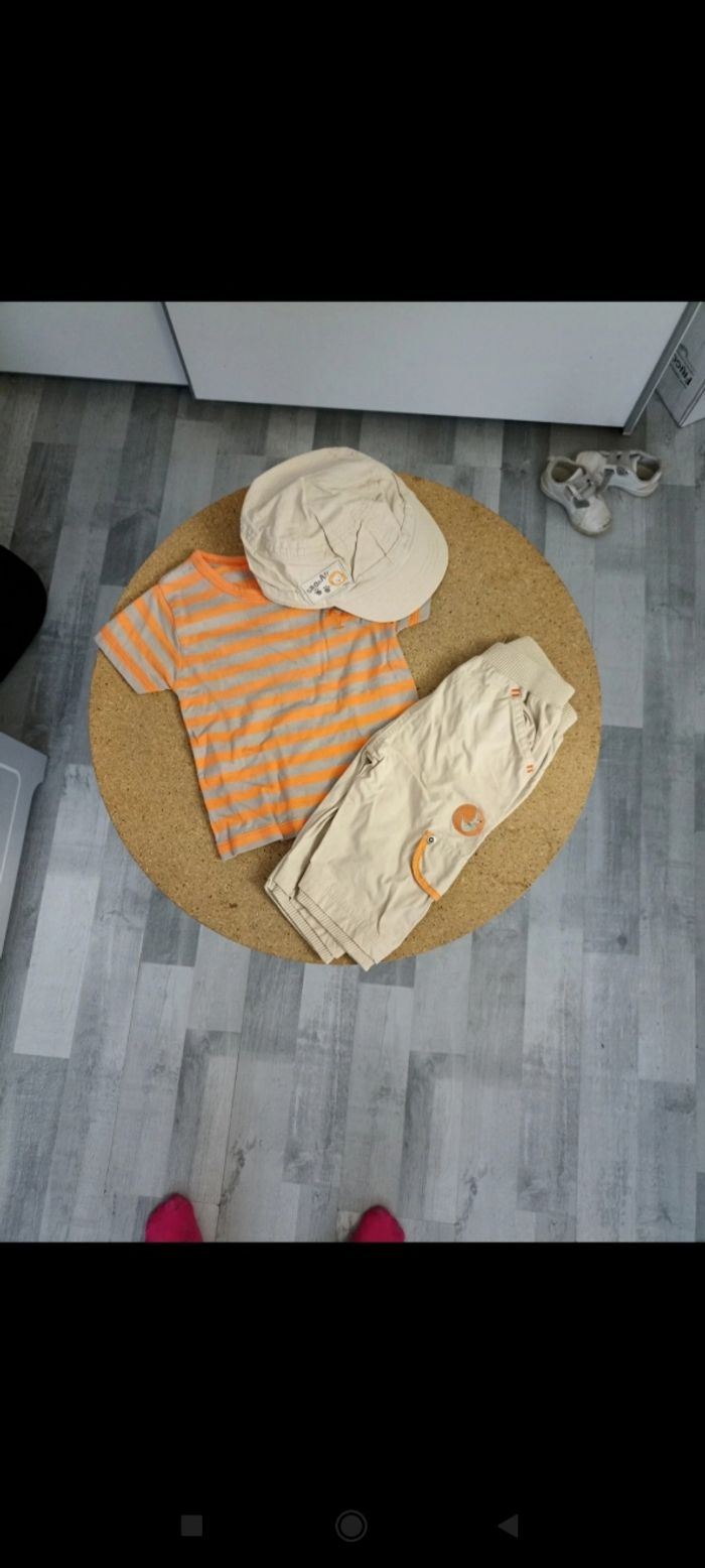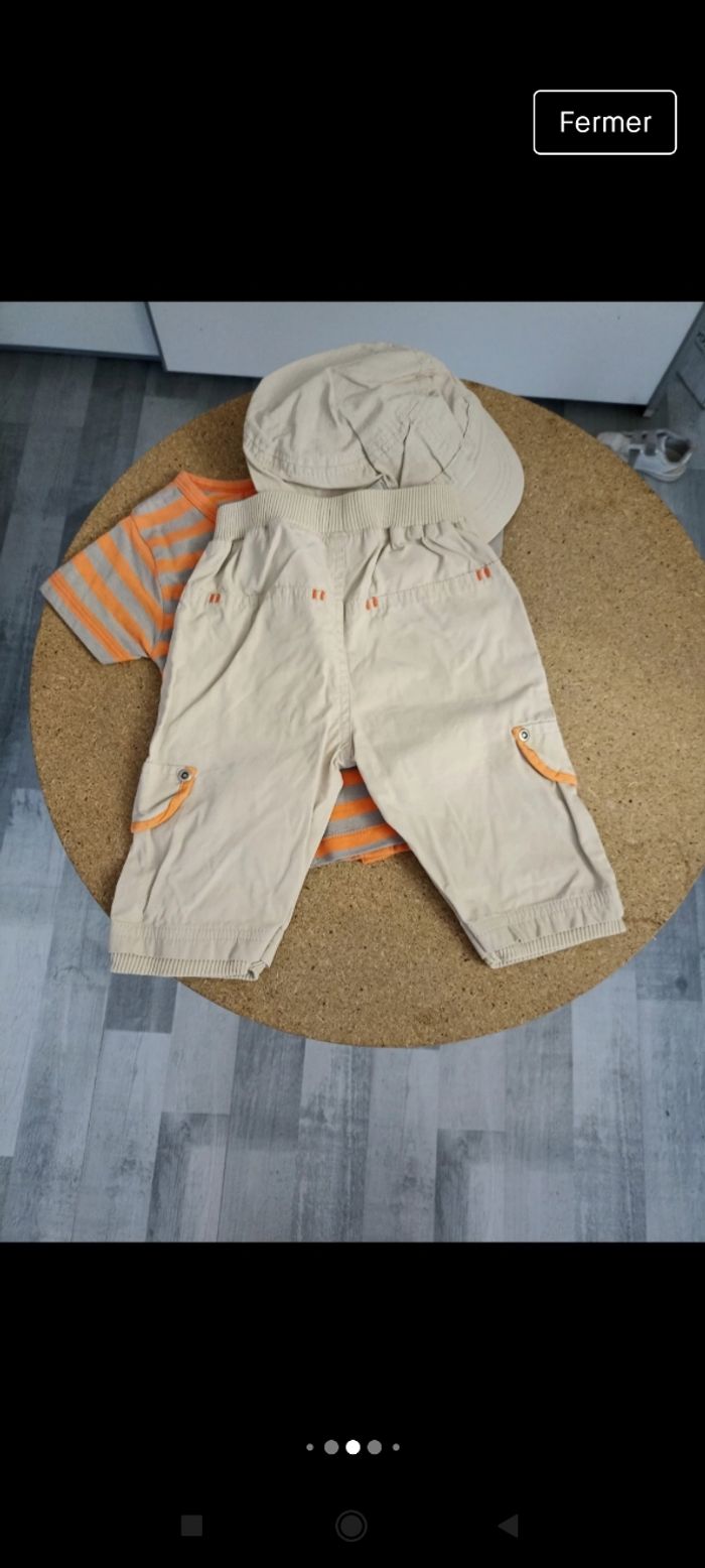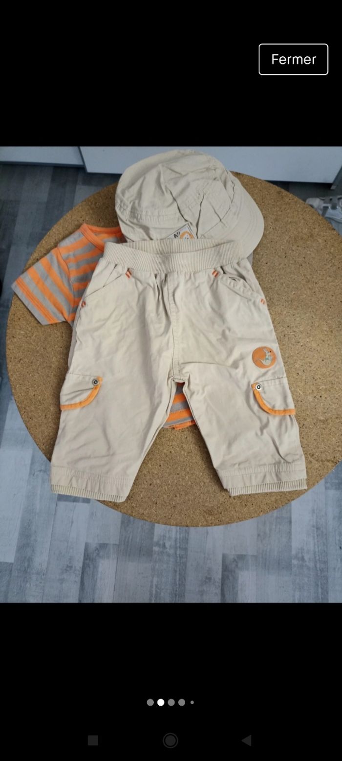 🎈petit ensemble safari taille 3/6 mois. Composé d'un teeshirt, pantalon et casquette. Couleur orange / beige