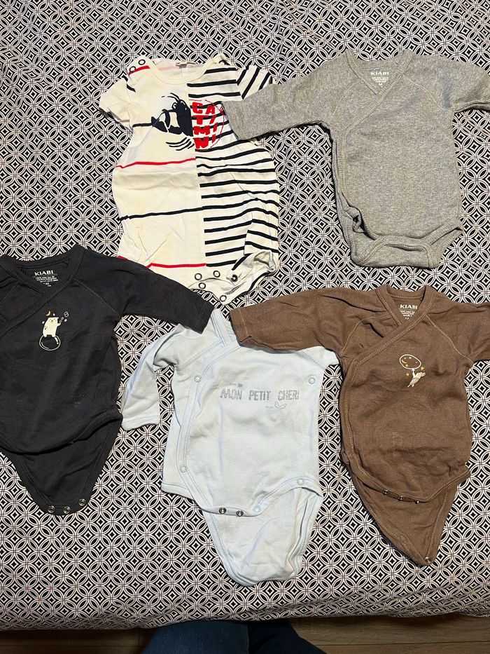 Lot de 5 bodies 3 Kiabi 1 catimini 1 petit bateau