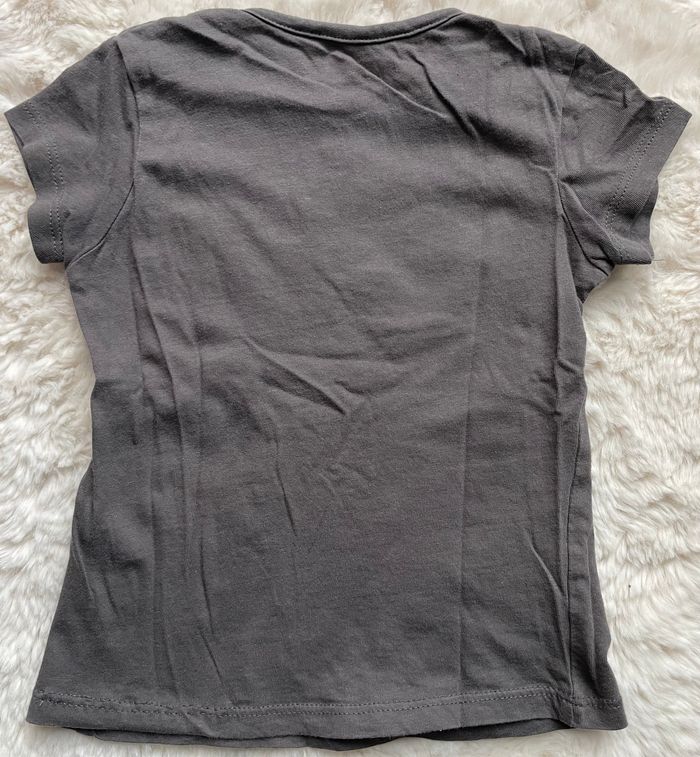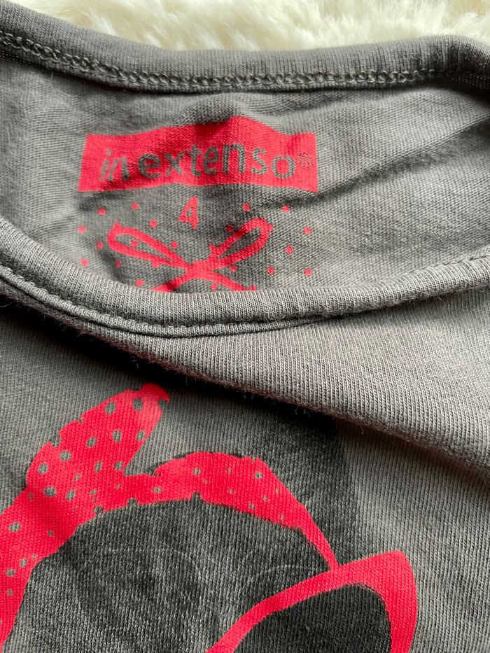 Tee shirt à manches courtes de la marque In Extenso Couleur gris foncé Taille 4 ans L’ourlet du bas a été recousu au dos (voir photos) Occasion, bon état