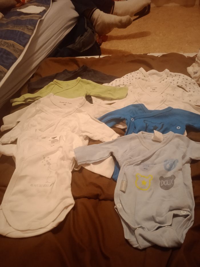 10 bodies naissance donc, 4neuf 6 de seconde main et que mon fils a déjà porter mais tout est en très bon état