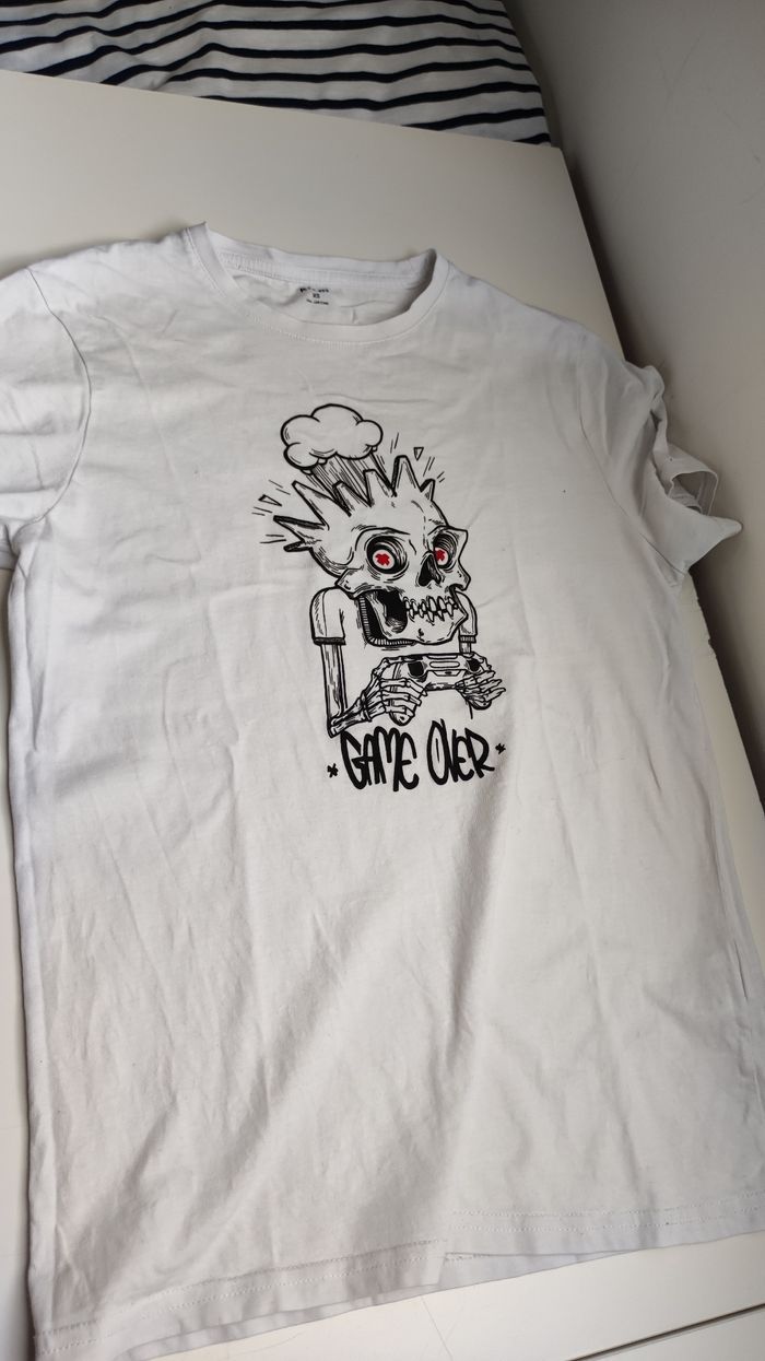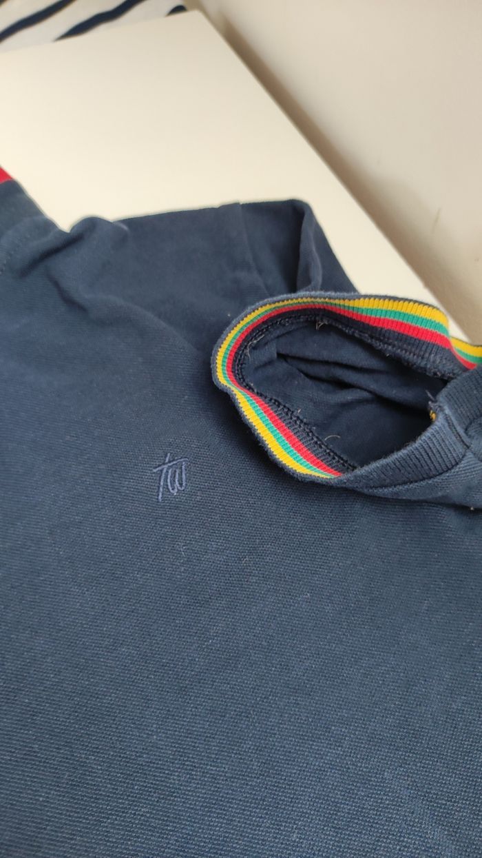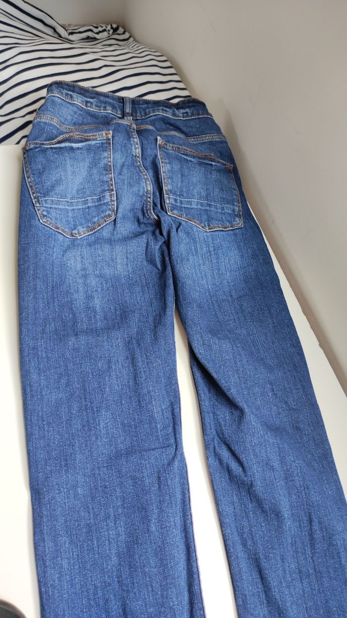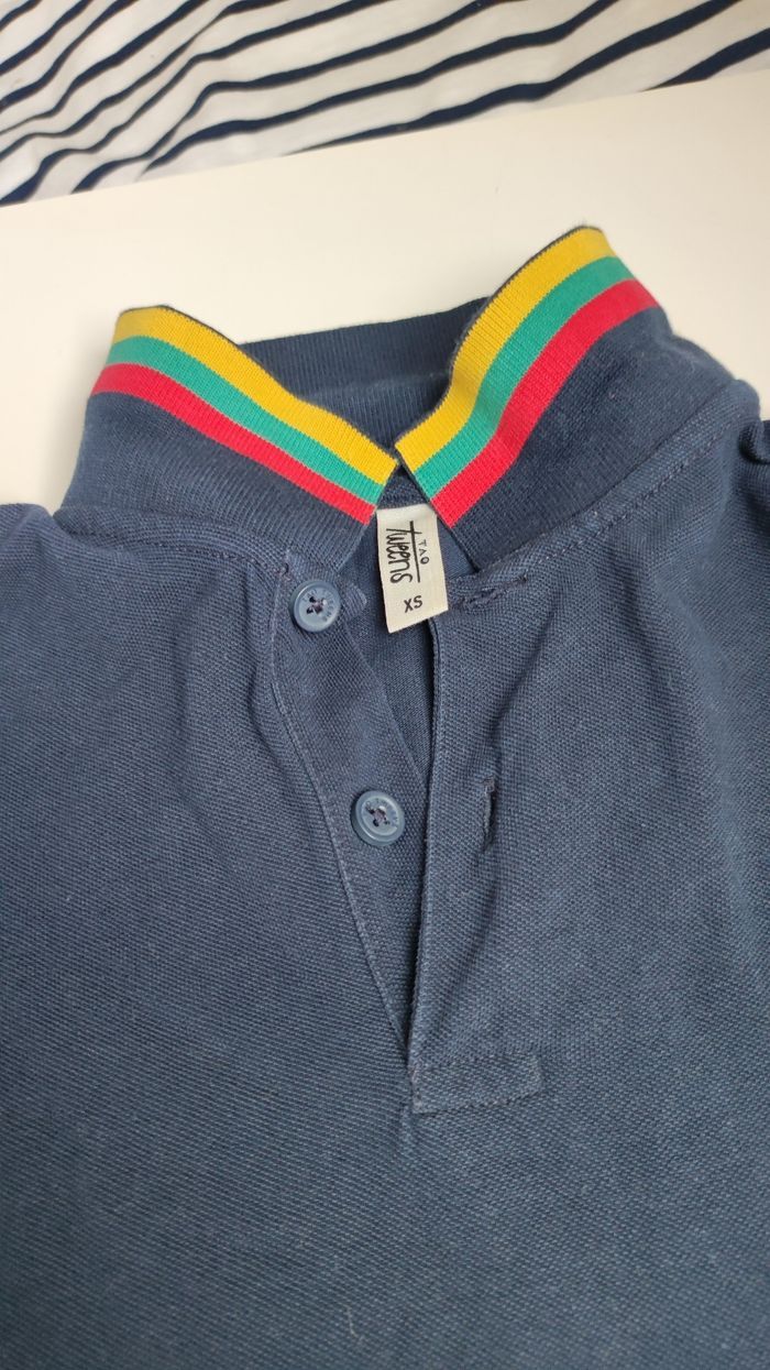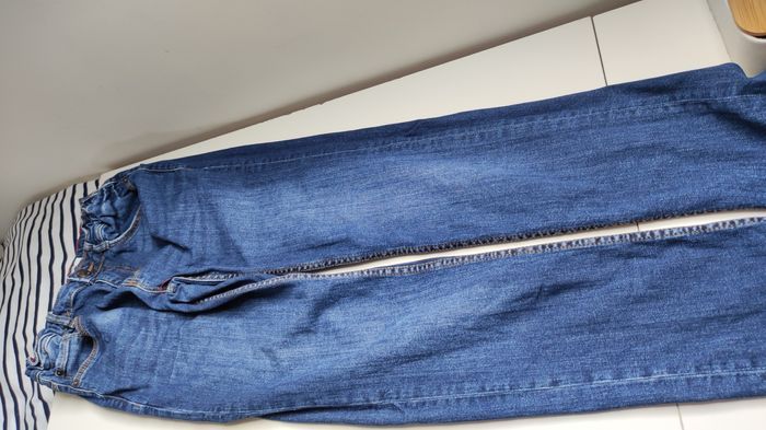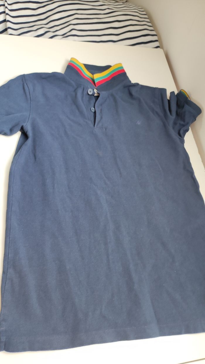 Jean peu porté XS Kiabi Tee shirt XS Kiabi Polo bleu avec lisière coloré tape a l'oeil