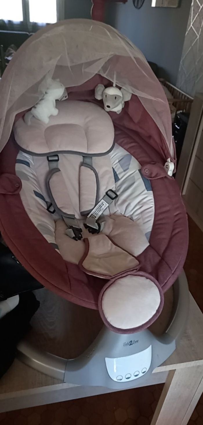 Balancelle fille servi 1 seule fois avec télécommande elle fait de la musique et ce balance il y a une moustiquaire avec