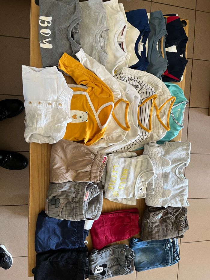 Bonjour je vend un lot de vêtement bébé taille 6 mois qui comprend : -5 tee shirts manches longues -1 Sweat -1 chemise -6 bodys -2 pyjamas -8 pantalons