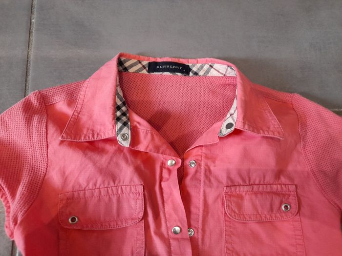 Chemise rose de marque Burberry Manches courtes avec pressions 2 poches latérales en haut de la chemise Très bon état.