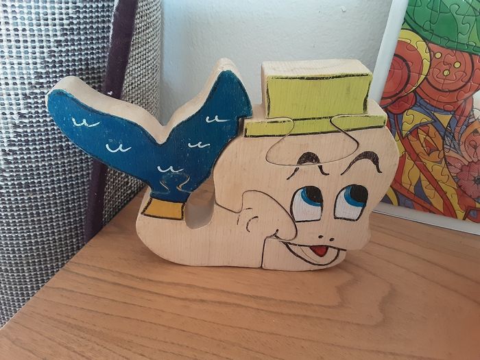 Puzzle en bois autoportant baleine vintage - photo numéro 1