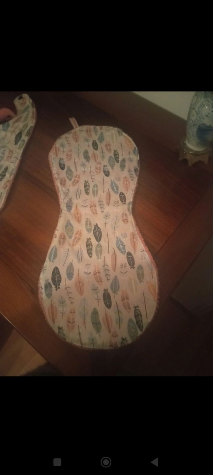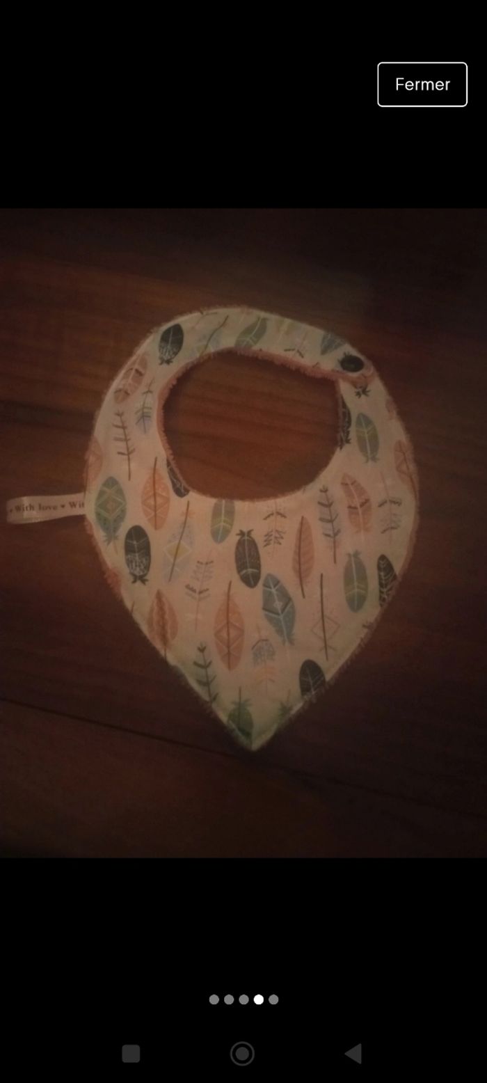 Lot naissance comprenant un bavoir, un bandana anti bavouille, un protège épaule et un Lot de 6 lingettes lavables Une face en coton, une face en éponge bambou très douce Neuf, jamais utilisé
