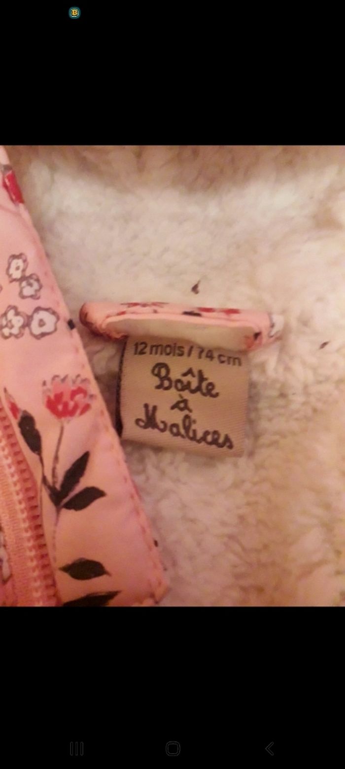 Manteau de couleur rose avec fleurs taille 12 mois en moumoute à l'intérieur neuf sans étiquette :)