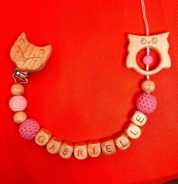 Attache tétine personnalisé en silicone ou en bois au souhait de l’acheteur . Personnalisable au choix de l’acheteur que ce soit la couleur comme le prénom ou le thème . Le fil est doublé pour plus de sécurité tout le long de l’attache tétine. N’hésitez pas à me demander et regarder mon dressing. 1€ supplémentaire cela demander pour l’adaptateur mam Une photo vous sera envoyée avant l’expédition pour vous ayez un aperçu du rendu. Tous les produits sont réalisés avec du materiel spécial conçu aux bébés , enfants.