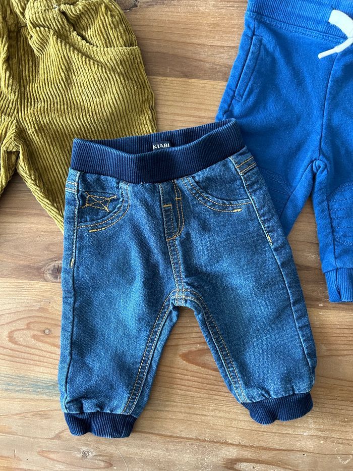 Lot de 3 pantalons en taille 3 mois : - un pantalon en velours couleur kaki / jaune vert de la marque Cyrillus - un jogging bleu de la marque kiabi - un jean de la marque Kiabi Ils sont tous en très bon état ! Le jogging bleu est même quasiment neuf (très peu porté). Vous souhaitez voir d’autres articles ? #jessicafd3mois ➡️ Des réductions jusqu’à -20%