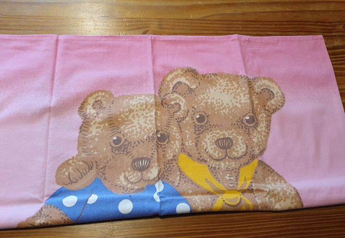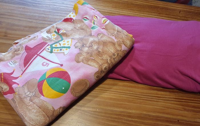 Parure de lit complète rose avec motif oursons. Lit pour une personne + drap housse.