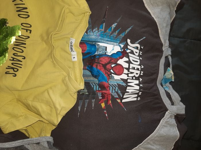 Lot été 5 ans garçon en très bon état 5 tee shirt en très bon état + 1 avec une micro tache à peine visible sur le spider man + 8 short /bermuda
