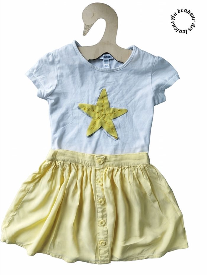 6 ans ensemble été teeshirt Okaïdi (6 ans) et jupe tex (5-6 ans)