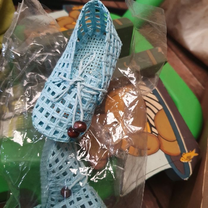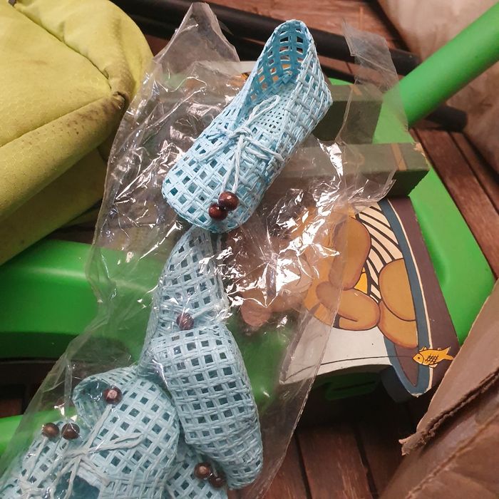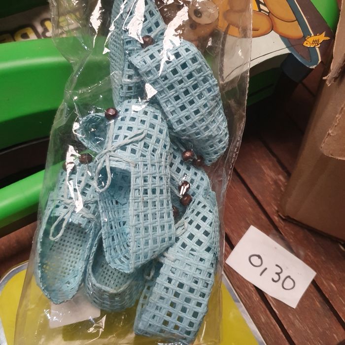 Petits chaussons bleus décoratifs idéal baptême ou fête de naissance e il y en a 8 (également 8 de disponibles en roses) 2.5 euros le lot de 8