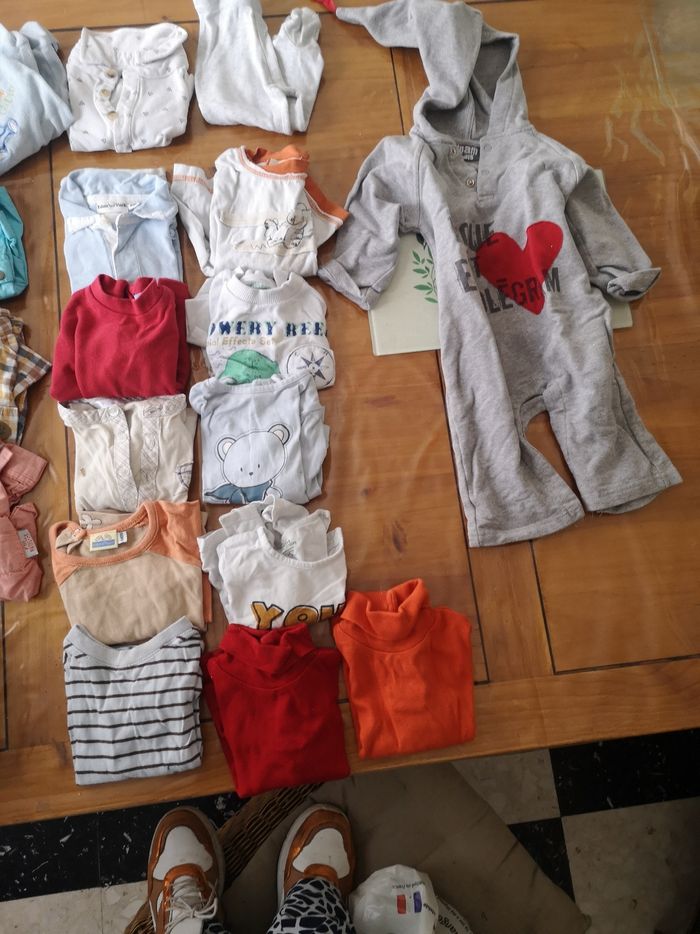 Vends lot vêtements 6 mois garçon: - 14 pantalons -4 salopettes (1 très chaude idéal pour la montagne) - 3 chemises -1 t-shirt manches courtes - 11 t-shirts manches longues - 2 pantalons de pyjama - 1 combinaison Le tout en très bon état, différentes marques