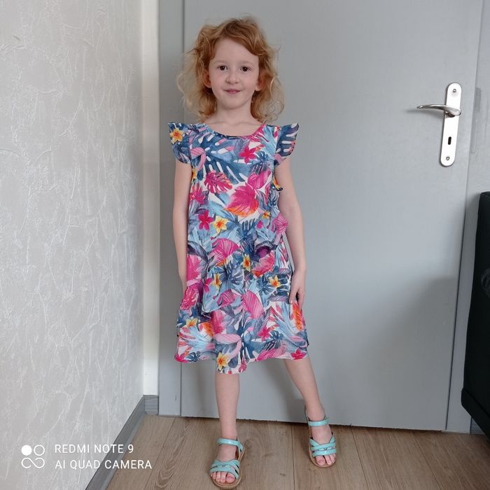 Jolis volants. Doublée. 100% polyester. Quelques micro trous voir photos. Marque Bob. 116cm.
