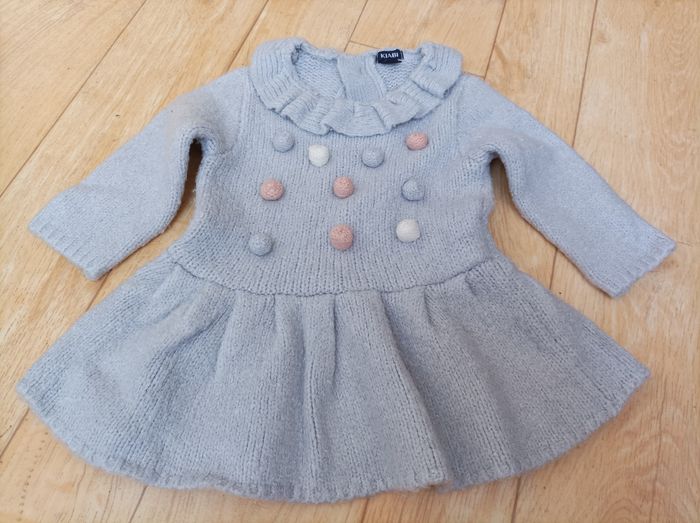 Robe grise en laine avec ponpons Excellent état Kiabi 3 mois