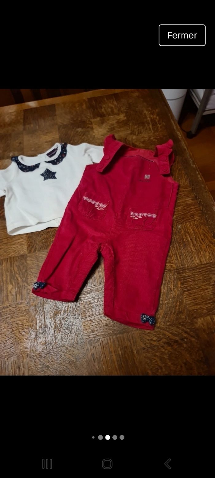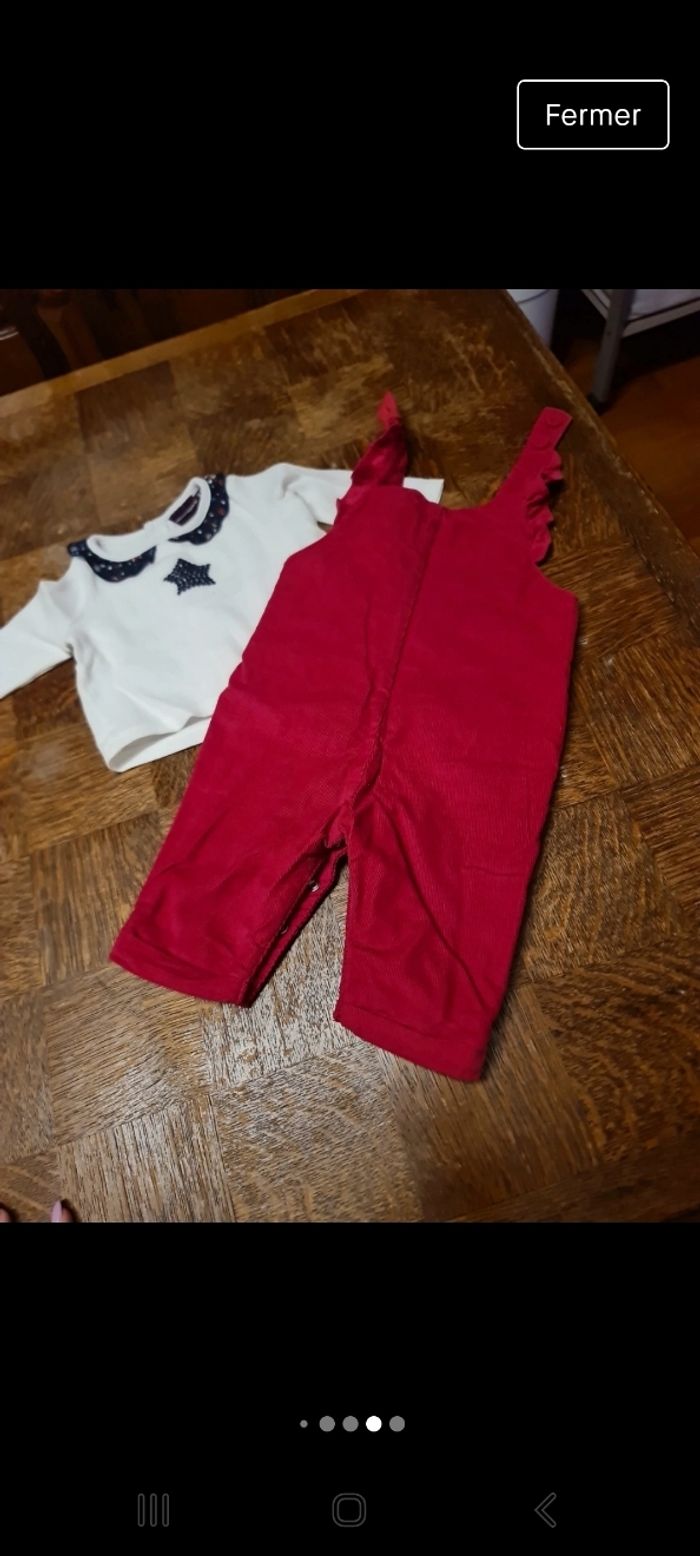 Taille 3mois Haut blanc + salopette rose fuchsia