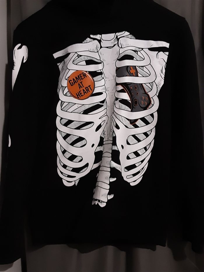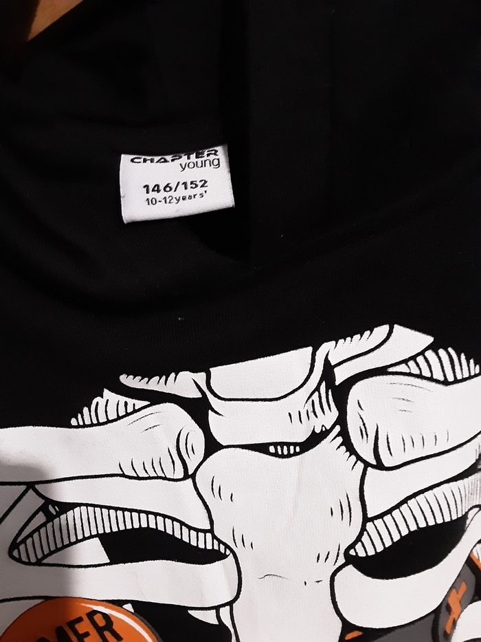 Pull à capuche squelette (dessins sur bras et capuche également) très peu porté. Bon état