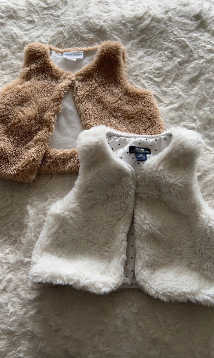 Lot de 2 vestes sans manches en moumoute. Verbaudet et Kiabi Taille : 1 mois
