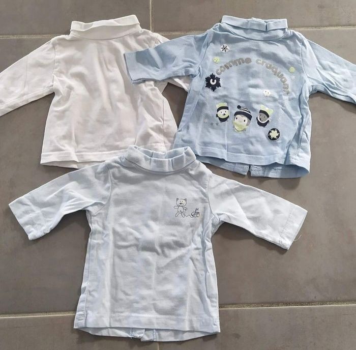 🚨Lot indissociable ⛔ Je ne réponds plus aux demandes d'achat à l'unité 54 cm 3 tee-shirts à manches longues et col roulé #1moisgarçoncamilled974