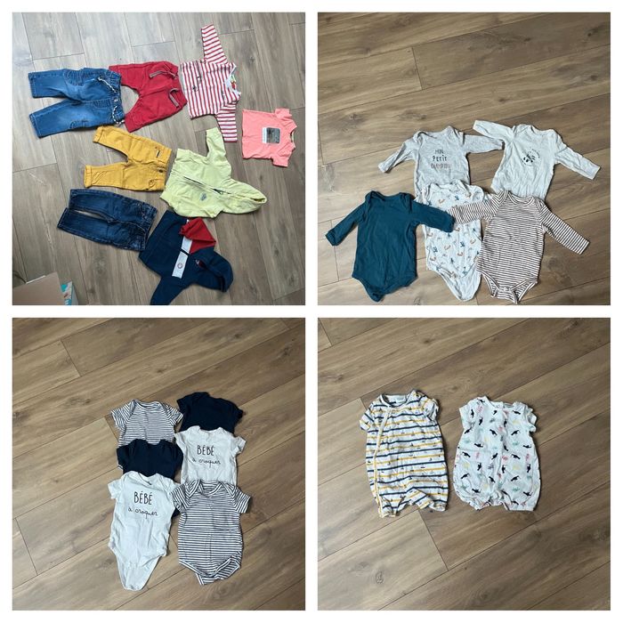 Lot tape a l’oeil 3 mois comprenant : 4 pantalons 2 vestes 1 t shirt manche longue 1 t shirt 5 bodies manches longues 6 manches courtes 2 barboteuses