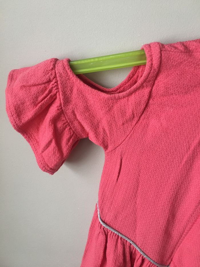 Jolie robe corail épaules dénudées Liseré argenté à la taille Quelques fils sont tirés mais invisibles lorsque la robe est portée Idéale pour les beaux jours