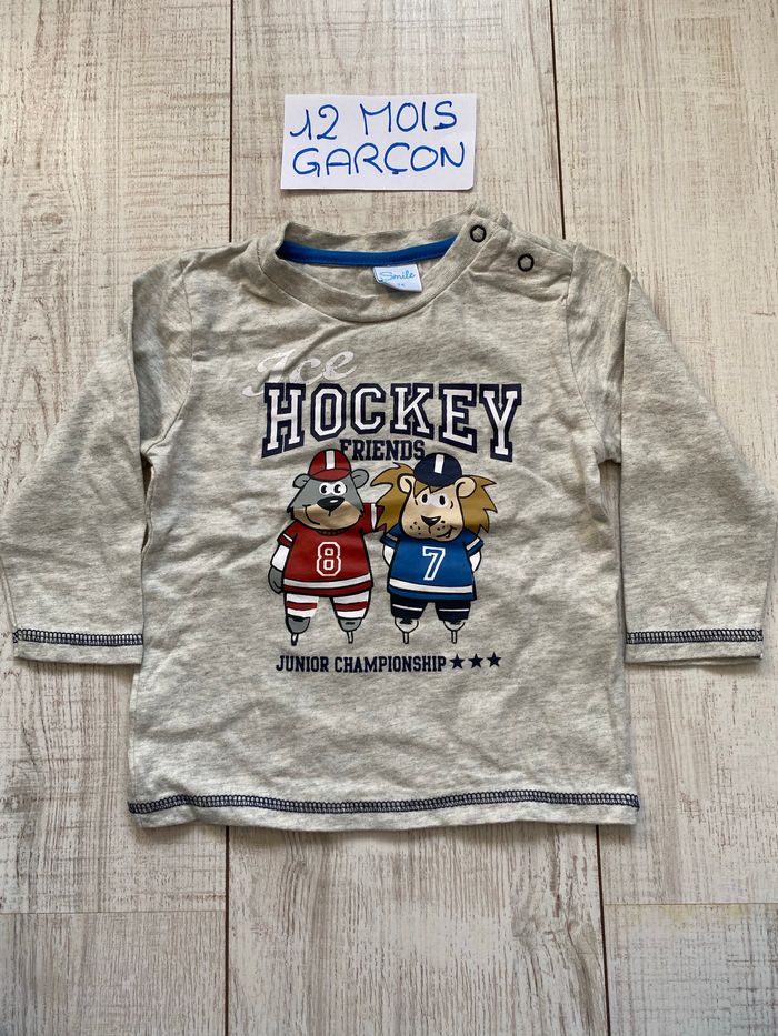 T-shirt à manches longues Motif : hockey Matière : coton Âge : 12 mois / 74 cm Utilisation : passage par la tête Marque : Smile #tiffanie4439_12mois