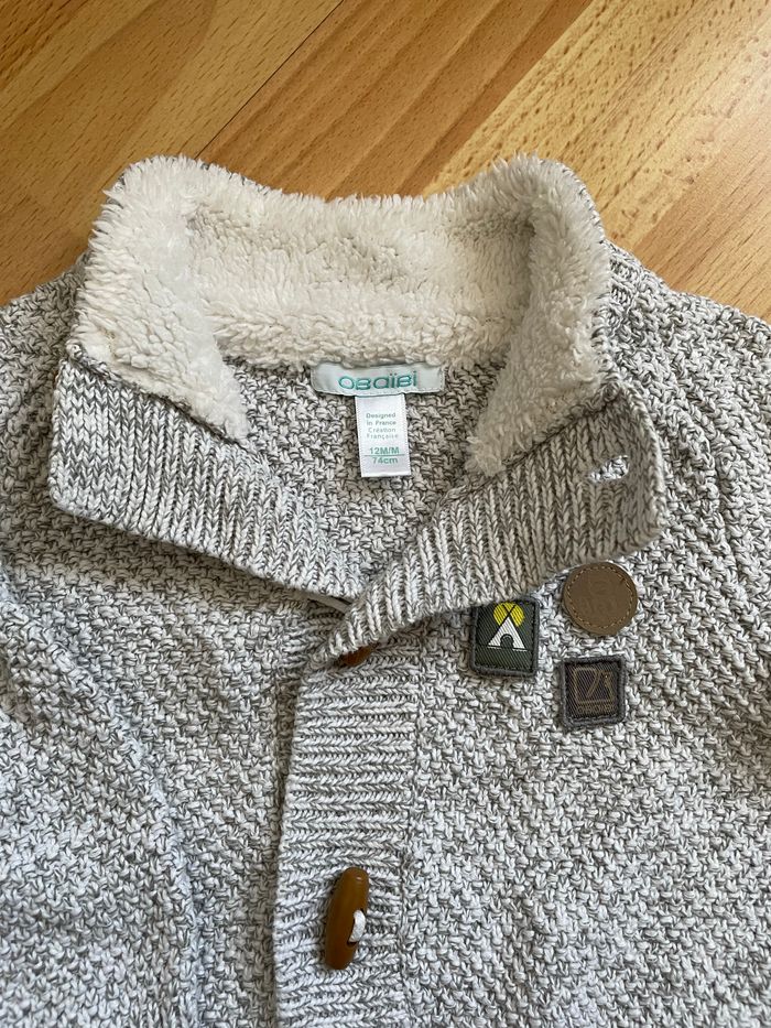 Gilet gris chiné Col tout doux 12 mois Obaïbi Très bon état