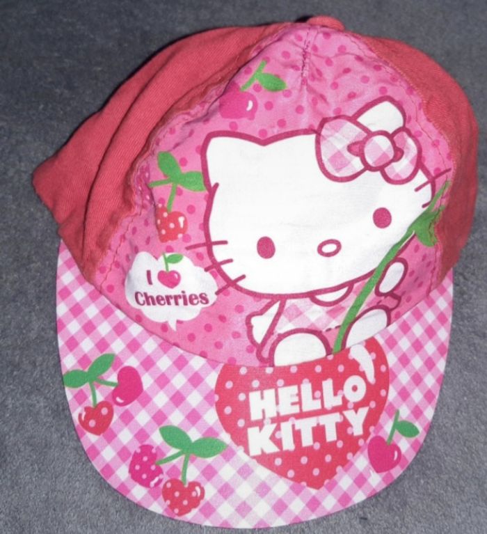 vends une casquette hello kitty neuve en taille 46/48 (6-12 mois), réglable par scratch à l'arrière propre, lavée 5 E