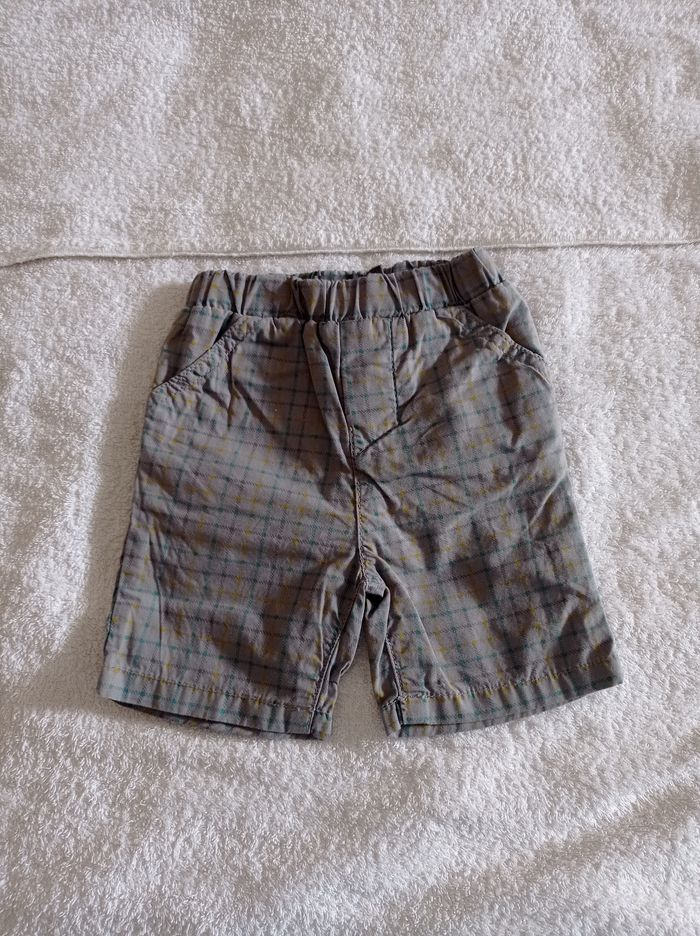 Short pour garçon couleur gris à carreaux vert voir photos de poches sur les côtés taille élastique marque orchestra taille 6 mois voir photos Antoine super sympa pour l'été agréable à porter