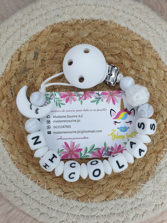 Attache tétine Lune 100% personnalisable en silicone alimentaire naturel et/ou bois naturel D'autres coloris disponibles Envoyez-moi un message, on confectionne ensemble et vous envoie la photo du prototype avant validation