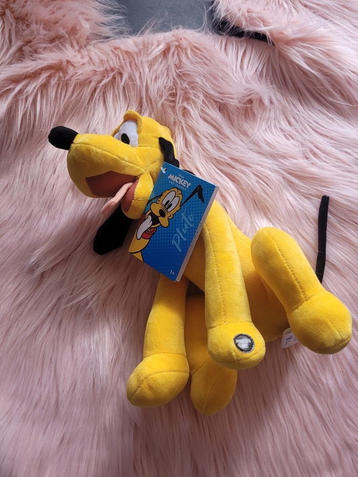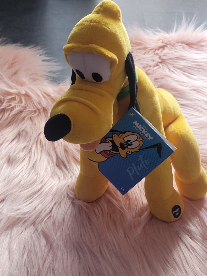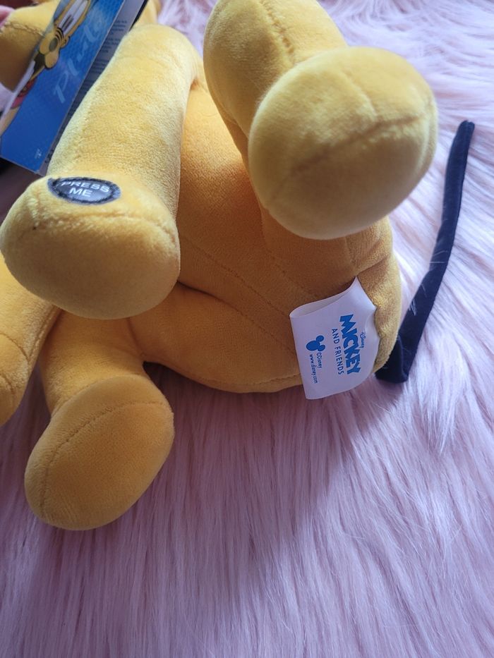 Peluche pluto disney Quand on appuie sur la patte il y a une musique rigolote ou il aboie ou il halète