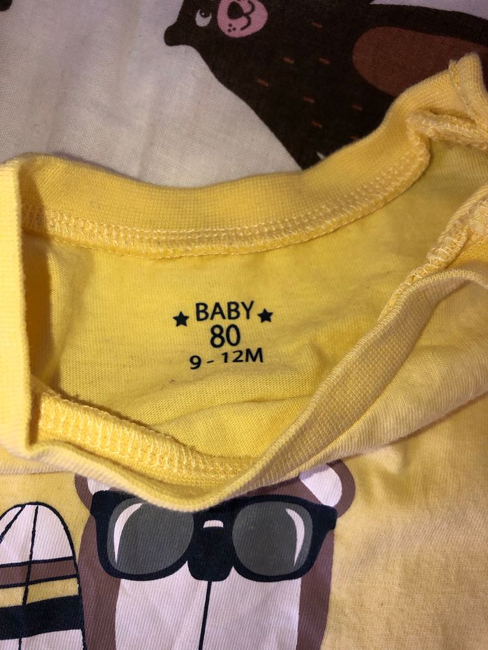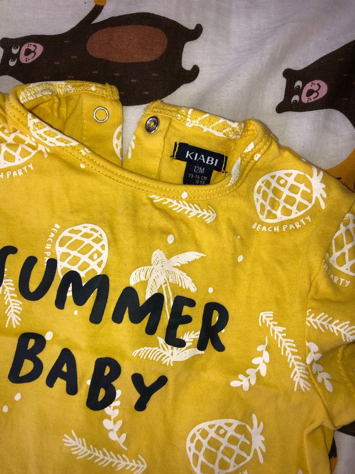 Taille 12 mois pour le teeshirt summer baby Taille 9/12 mois pour le reste mais convient très bien à du 12 mois. Bon état