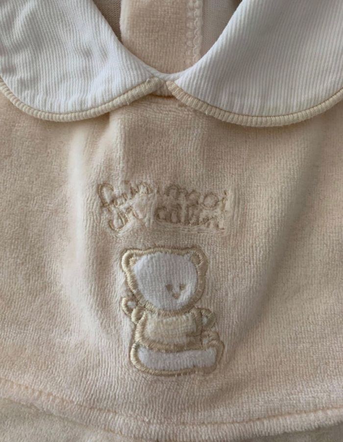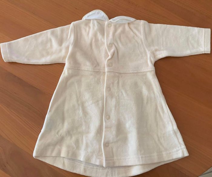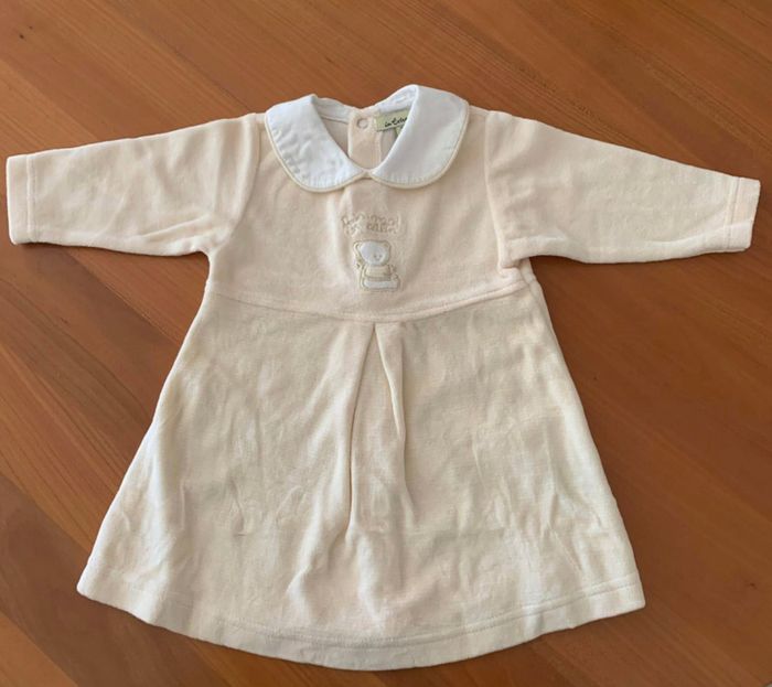 Robe manches longues douce et chaude pour l'hiver. De couleur beige/blanche. Taille 3 mois et en très bon état.