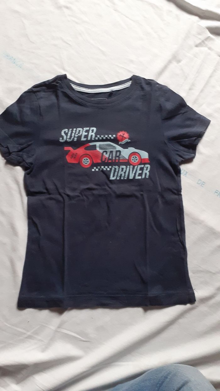 Tee-shirt marine motif voiture 5 ans
