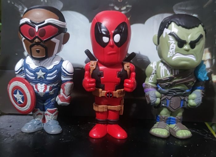 lot de figurines funko pop soda comprennant les personnates de Disney marvel captain america captain carter et Deadpool pour toute question je suis disponible et si vous achetez en lot remise automatique