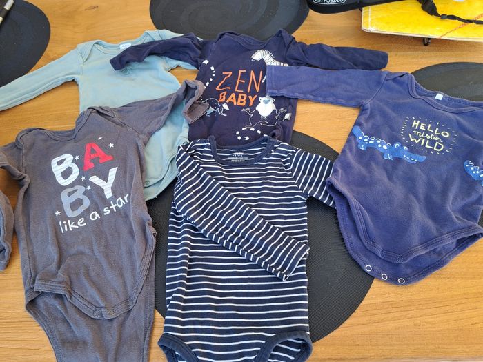 Lot de vêtements toute marques en 12 mois (body parfois taille différente sur l'étiquette mais correspond à du 12 mois ) 2 vestes 2 hauts manches longues 17 bodys manches longues 2 pantalons chaud (doublé à l'intérieur) 4 pantalons "normaux"