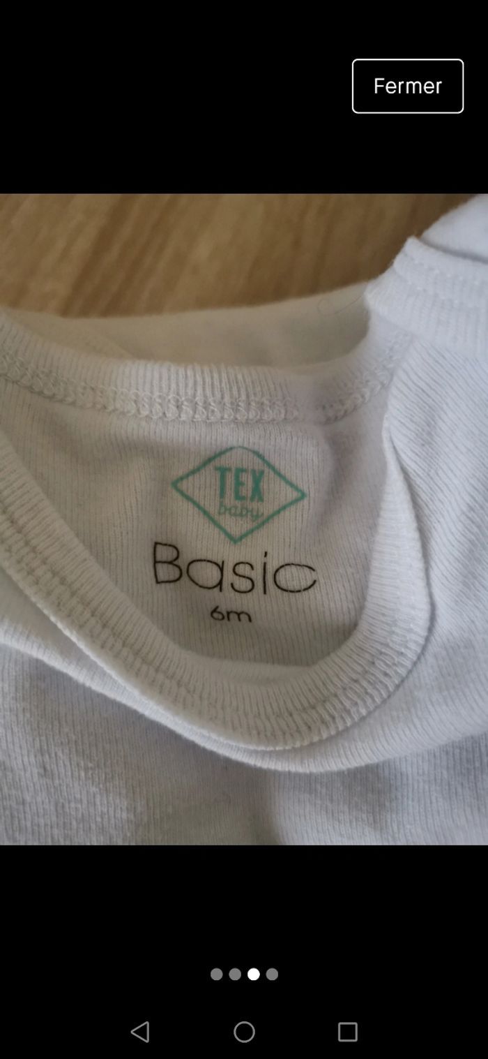 Lot de 5 Bodys taille 6 mois en très bon état de la marque TEX