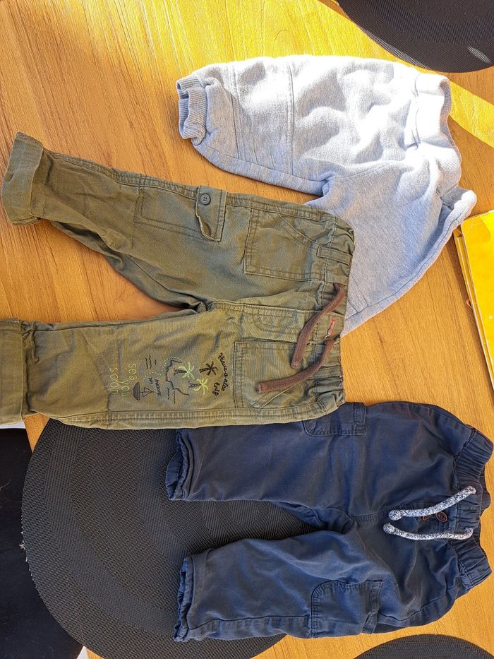 Lot de vêtements 9 mois 3 pantalons 2 pull 2 pyjama léger (12 mois mais taille 9 mois) 8 haut manche longue