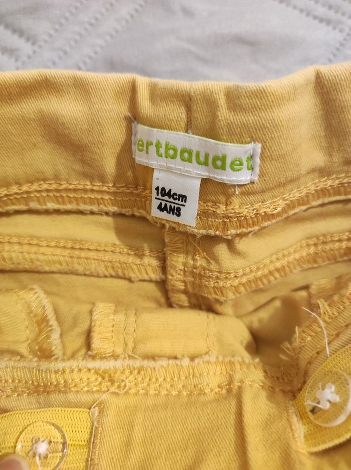Jean slim pour petite fille de 3-4 ans , de couleur jaune provenant de chez Verbaudet . Jeeging sans boutons ni fermeture éclair. Le jean est en très bon état. Vetement
