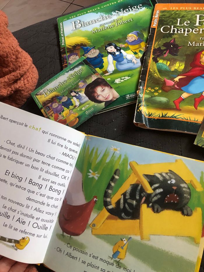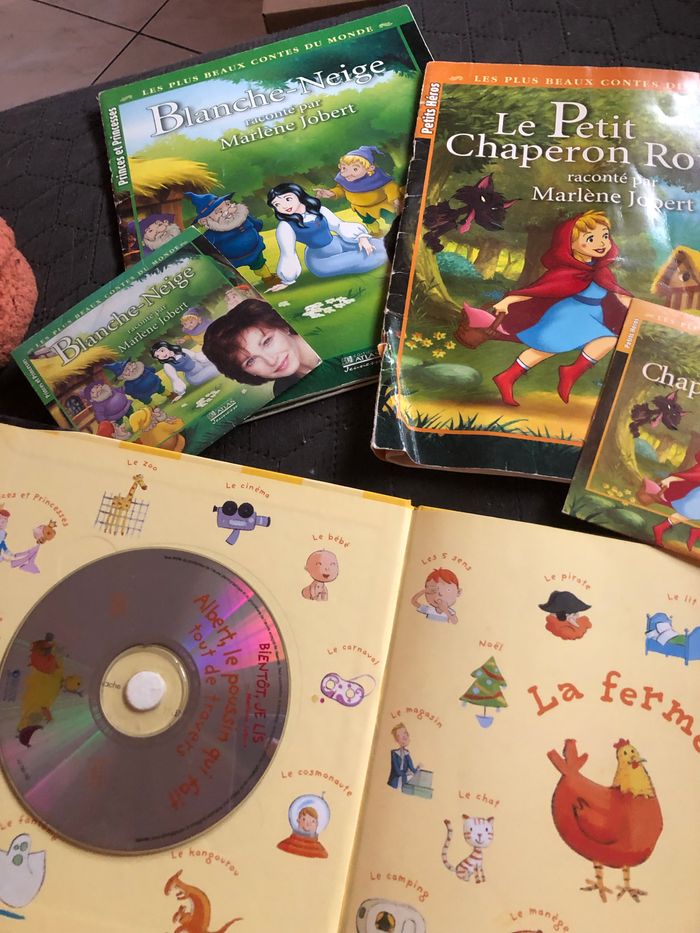 Lot de 3 livres + 3 CD de lecture Marlène Jobert - le petit chaperon rouge (livre abîmé sur le coin) - blanche neige - albert, le poussin qui fait tout de travers