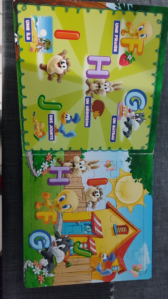 livre puzzle" j'apprends l'alphabet" avec bébé Titi et ses amis