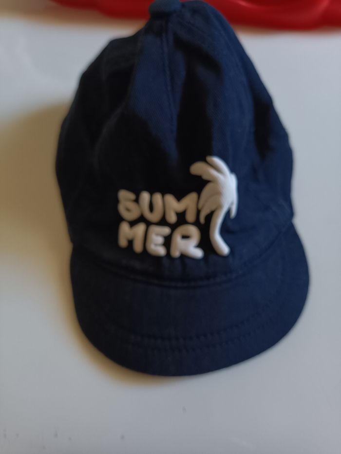 Casquette Kiabi en très bon état taille 3/6 mois . Couleur bleu marine.